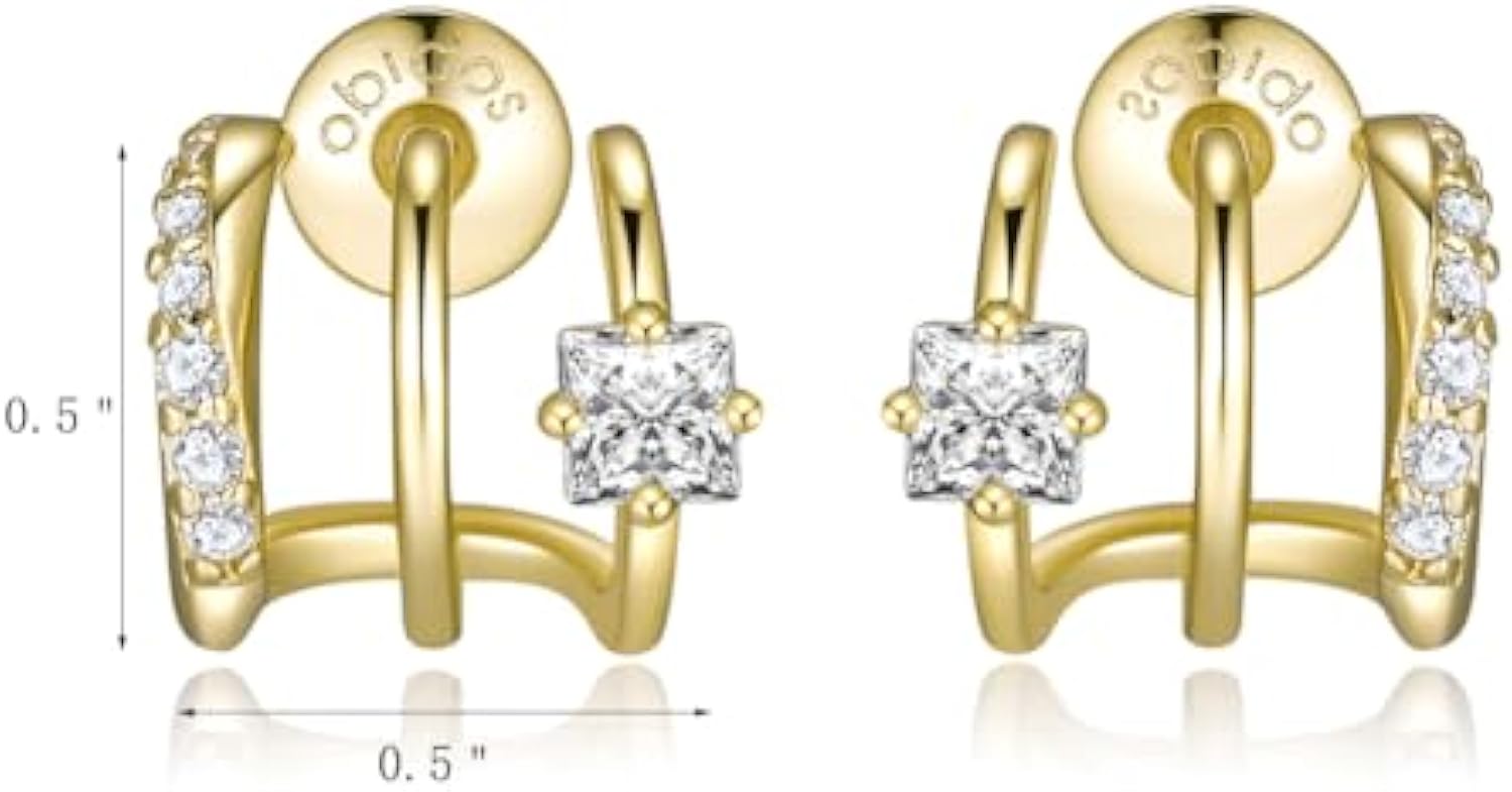 14K Gold Plated Triple Huggie Illusion Stud Earrings | Double Huggie Hoop Earrings for One Hole | Gold Hoop Earrings for Women | Drop earrings