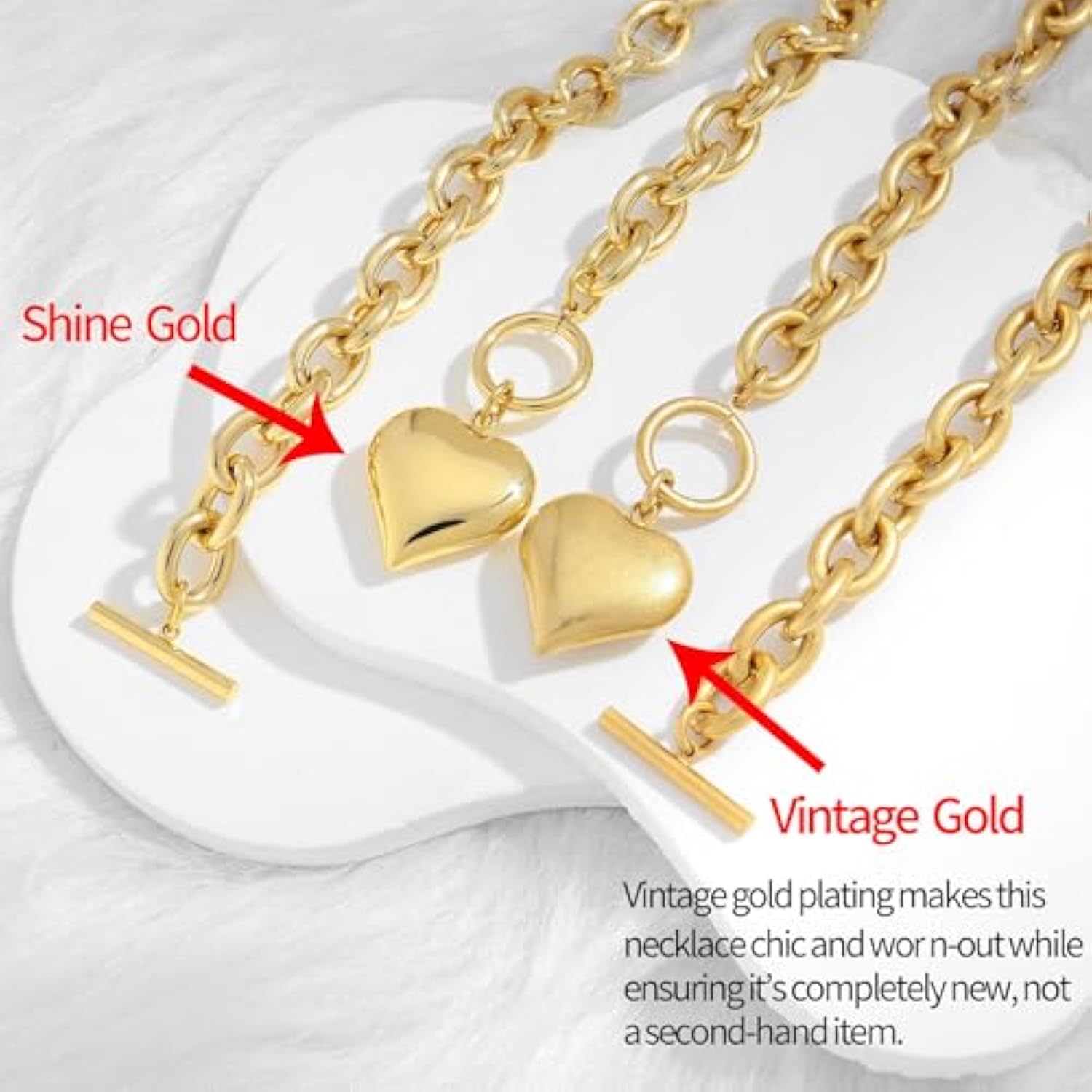 - Vintage cold Plating: The unique vintage gold color gives this chumky heart nacklace a stylish aged look-freshly crafted, not second-hand. A perfect touch of retro elegance.