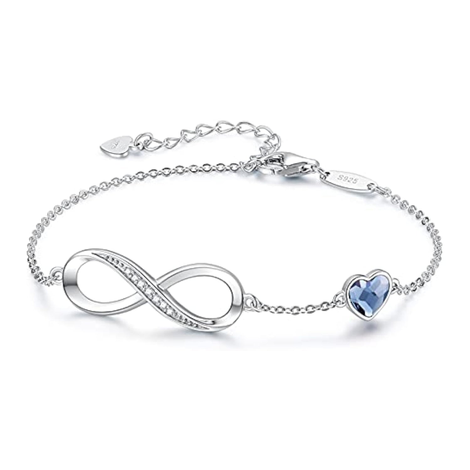 Infinity Heart Birthstone Charm Link Bracelet for Women 925 Sterling Silver Adjustable Mother's Day Gift Anniversary Birthday Jewelry for Wife Girlfriend Her